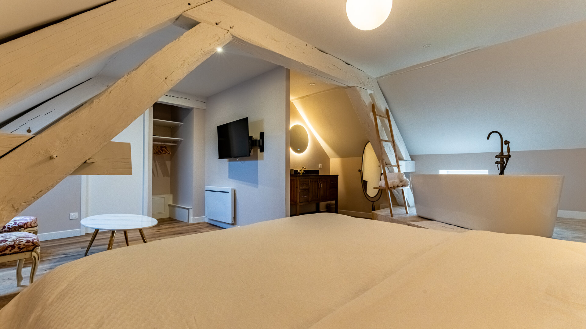 - Équipements : Accès Internet sans fil gratuit, Baignore, Draps et linge de toilette fournis, Ecran plat accès Molotov / Netflix / etc., Lit fait à l’arrivée, Literie de grande qualité, Sèche Cheveux, Sèche serviettes électrique, WC indépendant