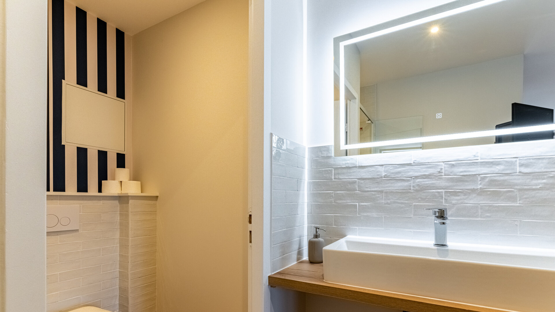 - Équipements : Accès Internet sans fil gratuit, Draps et linge de toilette fournis, Ecran plat accès Molotov / Netflix / etc., Lit fait à l’arrivée, Literie de grande qualité, Salle d'eau équipée d’une douche à l’italienne et 1 vasque, Sèche Cheveux, Sèche serviettes électrique, WC indépendant