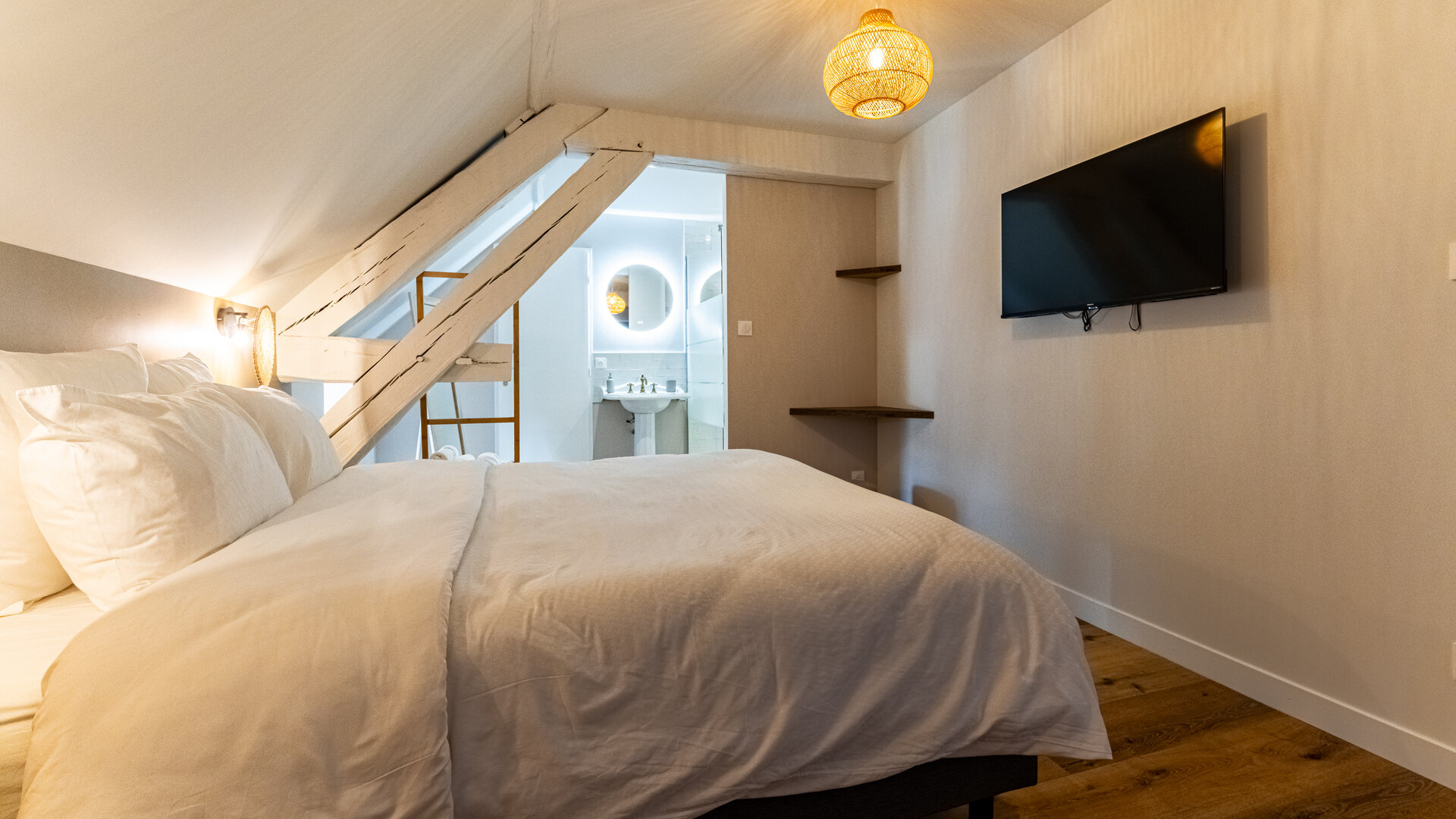 - Équipements : Accès Internet sans fil gratuit, Draps et linge de toilette fournis, Ecran plat accès Molotov / Netflix / etc., Lit fait à l’arrivée, Literie de grande qualité, Salle d'eau équipée d’une douche à l’italienne et 1 vasque, Sèche Cheveux, Sèche serviettes électrique, WC indépendant